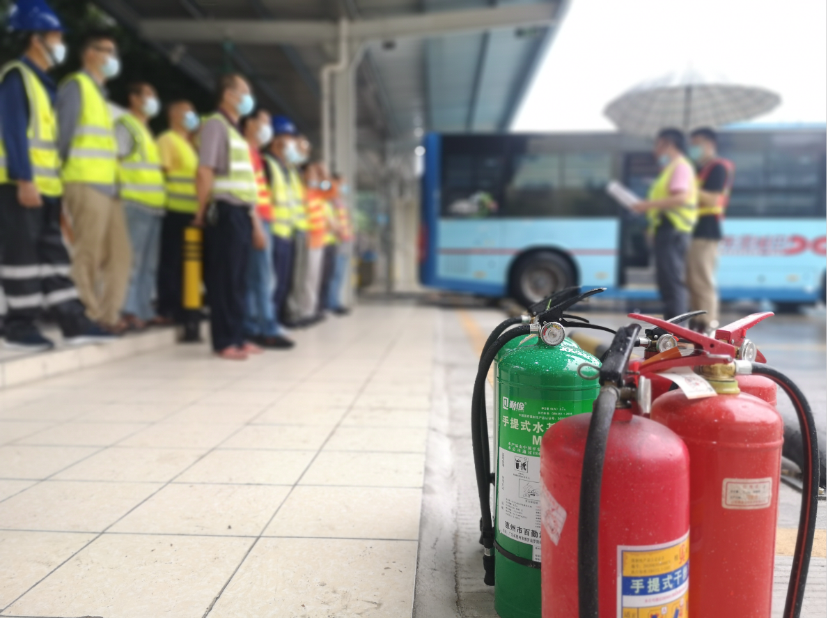 本次演習(xí)除了我司充電站一線員工及綜合部的員工到場參加外,還特別邀請(qǐng)了東莞市城巴運(yùn)輸有限公司車管部和經(jīng)營部的相關(guān)人員參加,本次演練由莞慧充羅炳安副經(jīng)理任指揮,區(qū)超其經(jīng)理及總公司李任榮副總經(jīng)理到場指導(dǎo)。