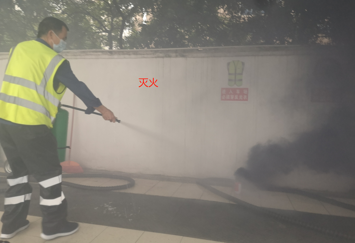 模擬充電樁模塊爆炸進(jìn)行應(yīng)急處置,當(dāng)聽到有電弧爆炸聲、發(fā)現(xiàn)充電樁冒煙或聞到有燒焦味(現(xiàn)場以點(diǎn)燃煙霧彈為信號(hào)),演習(xí)正式開始。