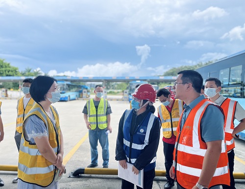 2022年6月30日14:30,東莞市發(fā)展和改革局副局長(zhǎng)陳寶玲率能源科、東城街道經(jīng)濟(jì)發(fā)展局、東莞市電力行業(yè)協(xié)會(huì)相關(guān)人員到我司榴花充電站開展安全生產(chǎn)督導(dǎo)檢查。
